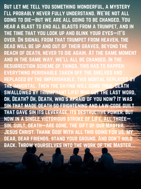 Life in the 18th century was plagued with suffering, death, social unrest, and life spans which were much shorter than we experience today. The divide between those who were wealthy and those who had nothing was great – not unlike today. However, the wealth divide did not deter people of England from believing in a life after death. There were three options that were widely talked about: eternal life, eternal punishment, or eternal sleeping until the great day of judgement. These three beliefs did not stop the rising of people who believed that there absolutely was no afterlife – once dead, their existence stopped. For John Wesley, he believed that the new creation can be fully experienced right here and right now as we are changed from glory to glory. As Dr. Lobody states it, “through acts of love, in union with God’s loving work, we help bring about that new creation toward which we are ever leaning.”1